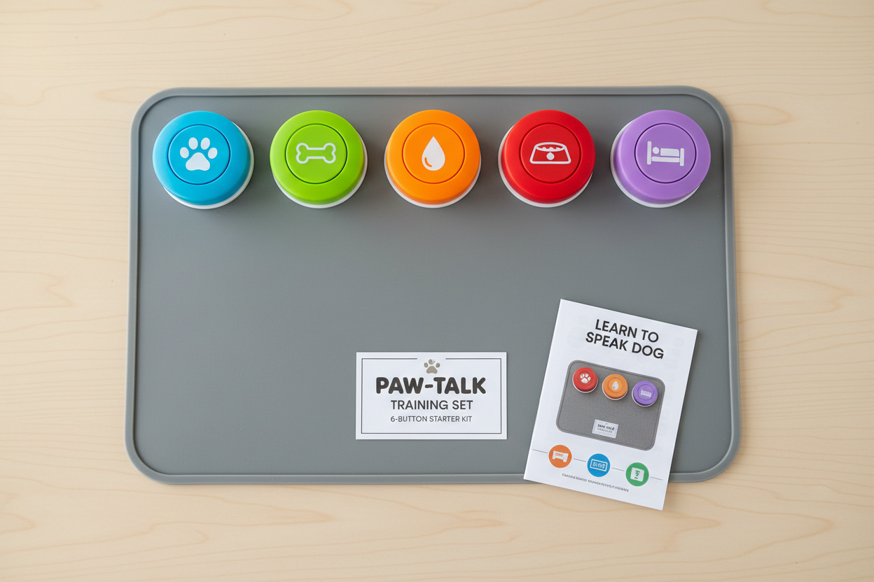 • 🐕 Opettaa koiraa kommunikoimaan – painamalla nappia, joka vastaa tunnetta tai pyyntöä